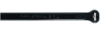 14.2" 50lb UV Black Nylon Cable Tie with Stainless Steel Locking Device 1,000/bag Specifications: Length: 14.2" Width: .19" Tensile Strength: 50 lbs Bag Quantity: 1,000 Material: Nylon 6/6 with Stainless Steel Locking Device Manufacturer: Thomas & Betts Brand: Ty-Rap Features/Benefits: • Features Nylon 6/6 Cable Ties with Stainless Steel Locking Device • Temperature Rating: -40°F to 185°F • UL Rated: UL9C45/Type 21 • CSA: Type 21 • Flammability Rating: UL 94 V-2 • Made in USA • Curved tip for easy threading and handling • Plenum Rated • Versatile cable ties can be used in countless applications • One-piece construction for consistent performance and reliability • Lowest threading force of any one-piece cable tie in the industry • Easy to Install — Won't Slip • Low Profile Head — Won't Snag • Stainless Steel Lock Maintains the Right Tension • Smooth Molded Body — Less Stress Sensitive than Notched Ties • Infinitely Adjustable Design So Always the Right Size and Bundle Tightness UV Black Cable Tie Benefits: • Greater resistance to damage caused by ultraviolet light – indoor or outdoor use. • UV Black Nylon 6/6 is used in continuous or extended exposure to outdoor sunlight. • The nylon cable tie is a weather resistant grade, enduring additional ultraviolet (UV) light. • This grade is produced by incorporating stabilizers in the nylon resin. • UV Stabilized Nylon cable ties are available only in black and other select colors of Ty-Raps from Thomas & Betts.